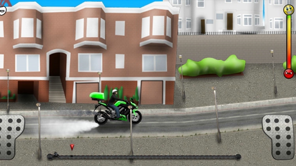 《比薩快遞員 Pizza Bike Delivery Boy》是一款3D的輕松有趣的自行車(chē)類(lèi)游戲。當(dāng) !當(dāng)!當(dāng)!你家的快遞!喜歡看到人們收到快遞后的滿(mǎn)足感嗎?全新的pizza快遞員來(lái)啦~你將要騎著自行車(chē)穿行于大街小巷啦~不過(guò)可要小心哦,這款自行車(chē)可是彈力十足。屏幕右下方可以讓自行車(chē)前進(jìn),左下方可以剎車(chē)。加油吧,把你的快樂(lè)帶到家家戶(hù)戶(hù)中去~~