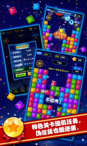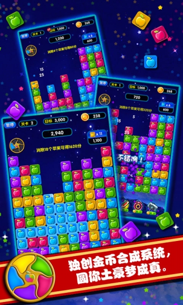 4、單次消除更多同色蘋果贏得更多積分;
