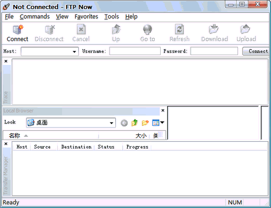 FTP Now V2.6.91 英文綠色特別版 FTP Now是一個多線程windowsFTP客戶端工具,有與Windows Explorer類似的界面。用它進行FTP傳送快速而簡單,既適合行家也適合初學者使用。特點:完全支持拖拽操作、傳送整個文件夾、ftp連接向導、同時傳輸多個文件、多線程、ftp站點書簽功能、自定義用戶界面、站點管理器、支持續(xù)傳、保持連接、Windows XP主題支持、連接失敗自動重試、支持所有標準ftp命令、無限免費技術支持等。