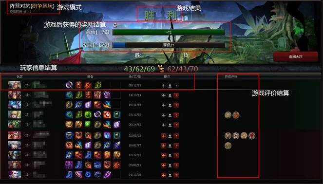 在一局游戲結(jié)束后,會進行一次結(jié)算。此外,對于在游戲中各隊數(shù)據(jù)表現(xiàn)突出的成員進行游戲評價勛章的頒發(fā)。
