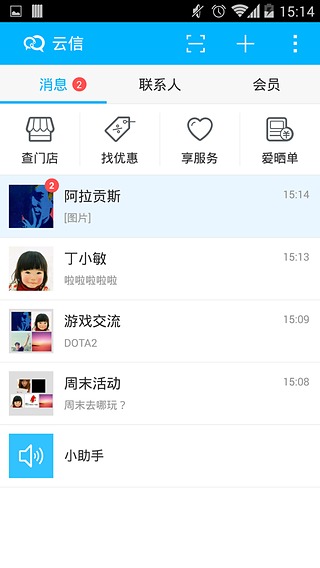 2、與好友聊天,還可以添加門店好友,關(guān)注公眾賬號,了解最新門店信息。
