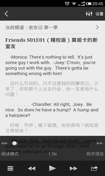 安卓系統(tǒng)上最好用的離線聽力軟件擁有每天更新的海量聽力庫,并獨(dú)家提供智能語音高亮跟隨功。-VOA標(biāo)準(zhǔn)、VOA慢速、BBC新聞每天更新-收入海量新概念、GRE、TOEFL聽力資源