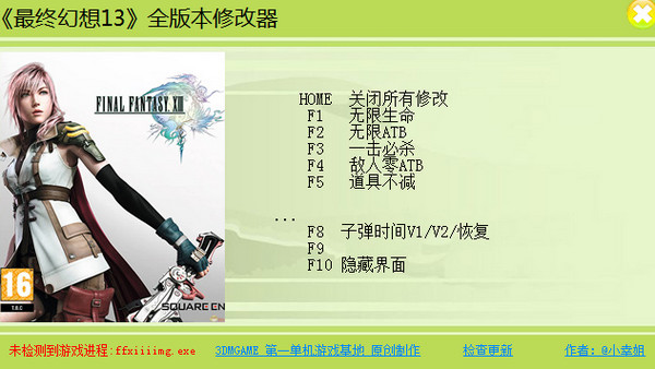 最終幻想13修改器是一款通用所有《最終幻想13》游戲版本的修改工具,修改器具有一擊必殺、無(wú)限生命、道具不減等功能,后續(xù)還會(huì)添加更多的功能供玩家使用,請(qǐng)保持更新。