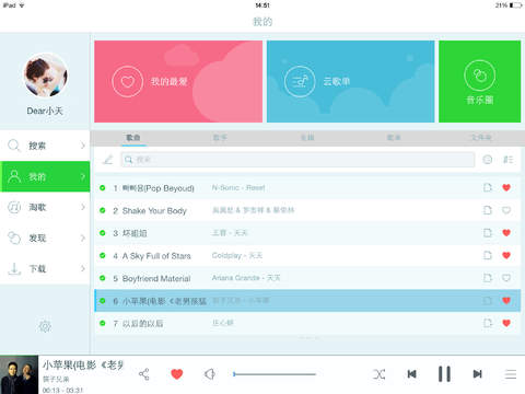 天天動聽iPad版是天天動聽專門為ipad用戶推出的高端音樂播放器,有用海量音樂資源,為用戶提供無損音頻格式免費(fèi)播放和下載,充實(shí)你的生活,凈化你的耳朵。