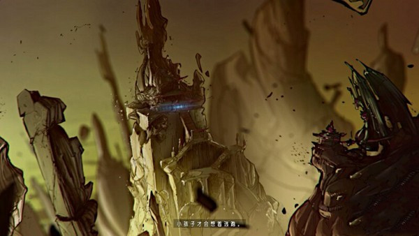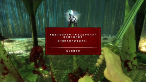 朦朧中主角看到了一個半機械的女性和怪物們廝殺在了一起,機械女輕松把怪物碎尸,最后把一把武器扔到了主句面前。