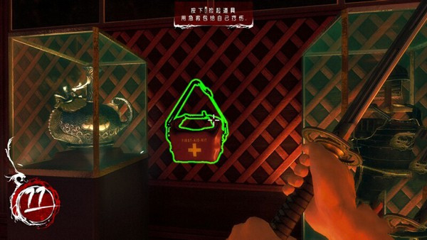 下面要解決一部分敵人,左鍵攻擊(可斷肢),E扔飛鏢(可斷肢)一會就能殺完敵人。尸體還能繼續(xù)鞭尸。