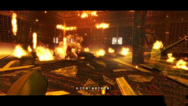 順著大橋來到著火的屋子里,沒走幾步主角掉了下去摔成重傷。