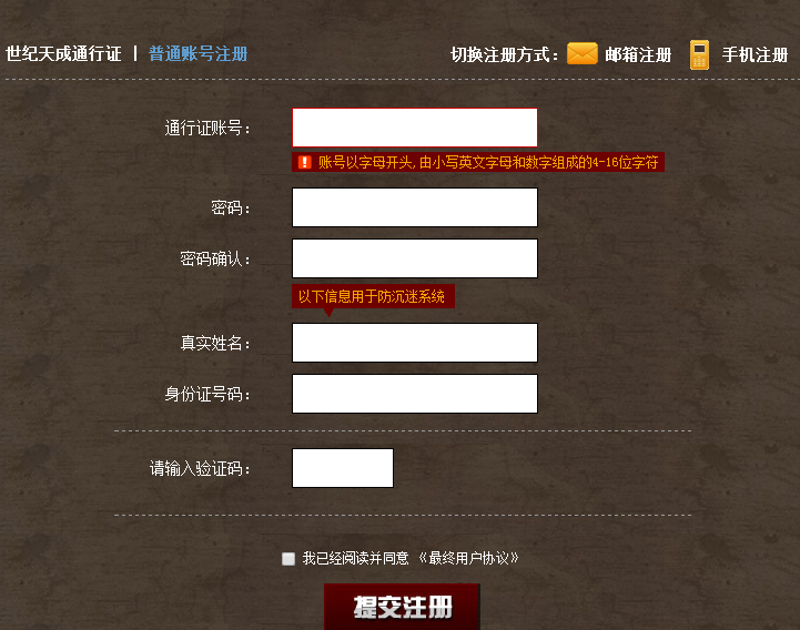 填寫真實信息以及賬號密碼即可注冊成功