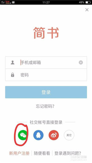 1、首先在本站下載簡書APP,然后可以通過電話號碼或者郵箱注冊,微信等社交賬號直接登錄也可以哦!想要方便快速的作者們,采取微信登錄也非常省時省力,不再會為了注冊費(fèi)時,也可以不用記那么多的密碼賬號。個人比較常用微信登錄。如下圖: