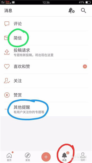 1)發(fā)現(xiàn)、消息和簡友圈