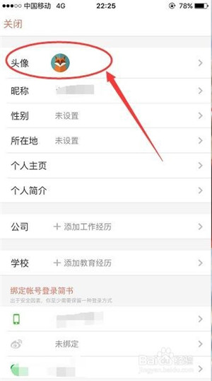 3、進(jìn)入個人資料頁面,點(diǎn)擊最上方的 頭像。