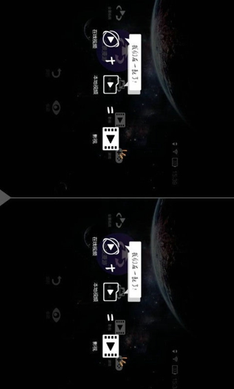 進入暴風(fēng)魔鏡app應(yīng)用后,手機顯示器會被分為左右眼兩個不同的影像,而且它們的顯示內(nèi)容會有細微的角度差距(左右眼視差)。首頁上放著“本地和在線視頻、游戲、現(xiàn)場體驗”4個核心功能的圖標。