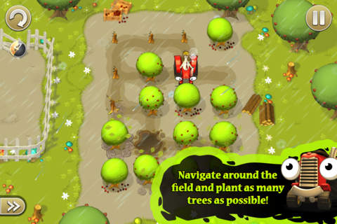 《田園拖拉機(jī) Tractor Trails》是一款清新可愛(ài)的益智類游戲。春天是播種的季節(jié),小雞Chuck也開(kāi)著拖拉機(jī)開(kāi)始播種來(lái)了。玩家要盡可能多的種樹(shù),但是拖拉機(jī)是不能剎車的,千萬(wàn)別被樹(shù)叢擋住出路!游戲道具豐富,收集足夠的玉米可以更新拖拉機(jī)的裝備。在砌出的路徑上得到盡可能多的樹(shù)木植物。升級(jí)你的拖拉機(jī)的能力,得到更多有用的提示并且收集玉米!【游戲特色】