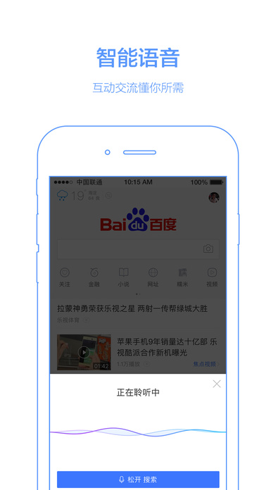 最懂中文的語音識別,讓您無須動手即可方便完成搜索,馬上說“天氣預(yù)報(bào)”感受下!