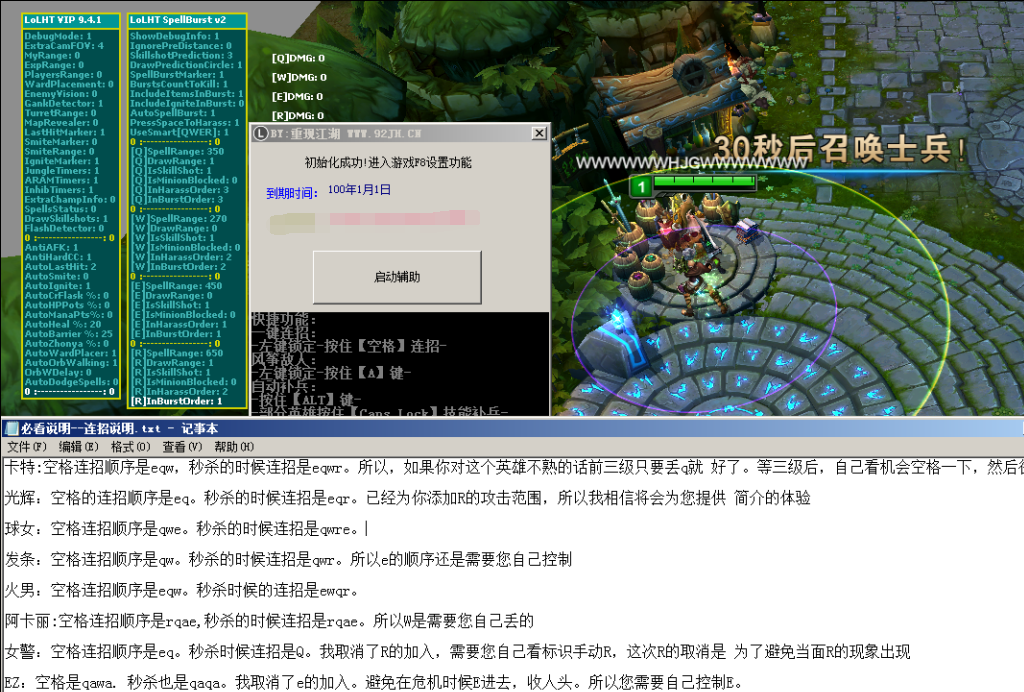 荊棘之興:空格連招是ewqw..秒殺連招是ewqwr。秒殺連招中我加入了R,如果你覺得加入R不好,記 得跟我聯(lián)系,我取消他