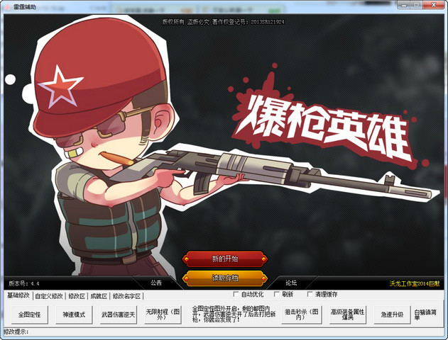 爆槍英雄雷霆輔助是一款4399爆槍英雄的游戲輔助工具。它的輔助功能非常強(qiáng)大,比如:全圖定怪、神速模式、武器傷害逆天、無限射程以及全員無限生命和載具傷害逆天等,是不是很心動啦,那快來下載吧。