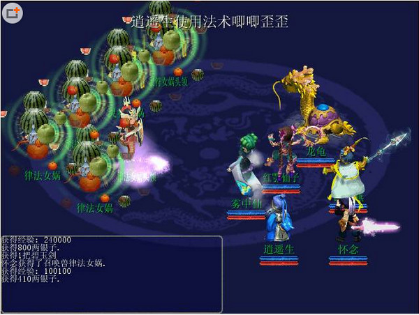 接下來一站是風靈珠.去到方寸問了下菩提老祖原來風靈珠在方寸山連蚩尤也不敢亂進入呵呵逍遙就放心了.但是聽到個消息懷玉居然一個人去領(lǐng)飛升任務(wù)太危險了必須要有逍遙他們一起去哈哈.第一站先去月宮找11.32呵呵.去到居然已經(jīng)過了那關(guān)了.懷玉可真強大.馬上去斬仙臺.去到懷玉已在等待了.懷玉驚訝的說怎么你們也來了.!!! 嘻嘻懷戀當然要來拉嘻嘻!!話說多一個人多一份力量嘛.也由不得懷玉了.懷玉感覺到馬上就來臨了天劫.馬上去傲來國的蓬萊仙島.進去后驚訝了,居然連落夜和玲兒也來了,呵呵.要死一起死要活一起活.好馬上進入能量圈內(nèi).進去后天庭的人還真拽呵呵.氣到懷戀死翹翹的,懷戀決定一輩子也不飛升了.馬上開戰(zhàn).嘻嘻.和天庭戰(zhàn)斗5場之后懷玉隨著天兵他們上天庭報道了,落夜玲兒也走了.逍遙也要回去師門了,小燕也要走了臨走前還和懷戀撒嬌了一會給了懷戀一個錢包呵呵.