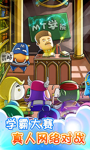 我叫MT魔法學(xué)院里擁有創(chuàng)新的戰(zhàn)斗模式,萌萌的角色終于脫離無腦自動出擊,用最擅長的知識擊潰敵人,彰顯學(xué)霸風(fēng)采。無限連擊、無限通關(guān),拋開書本開動腦筋。這里沒有枯燥的知識,只有你想不到的幽默。我叫MT動畫主角卡牌帶來酷炫技能,據(jù)說集齊全部還有神秘成就,難道是召喚神龍?學(xué)霸大賽,頭腦風(fēng)暴無極限,誰才是真正的圣斗士?不用難題戰(zhàn)斗的騷年不是好學(xué)霸。世界BOSS燃燒軍團(tuán)入侵,英雄不再無用武之地,馳騁沙場,征戰(zhàn)八方,成就全服首殺,銘刻豐碑永流傳。