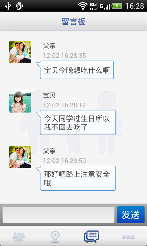 4.實(shí)時文字溝通:免費(fèi)消息發(fā)送,實(shí)時文字溝通或留言,讓家人隨時了解彼此的狀態(tài),讓家人更放心;