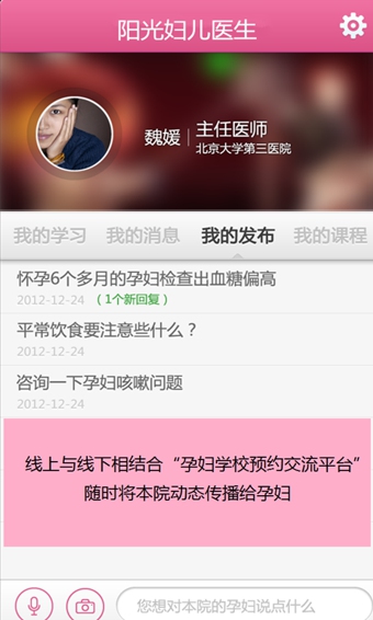 1、如果您是醫(yī)生,請下載“陽光婦兒醫(yī)生”,注冊審核通過后,即可上線解答用戶問題和發(fā)布孕婦學(xué)校課程;