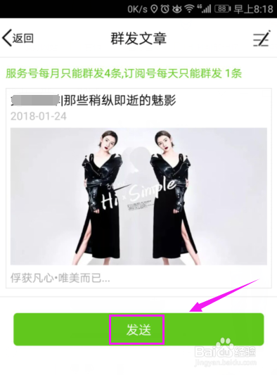 最后,我們點(diǎn)擊下【發(fā)送】,這樣我們在手機(jī)上也可以發(fā)送文章了,很方便,如圖。