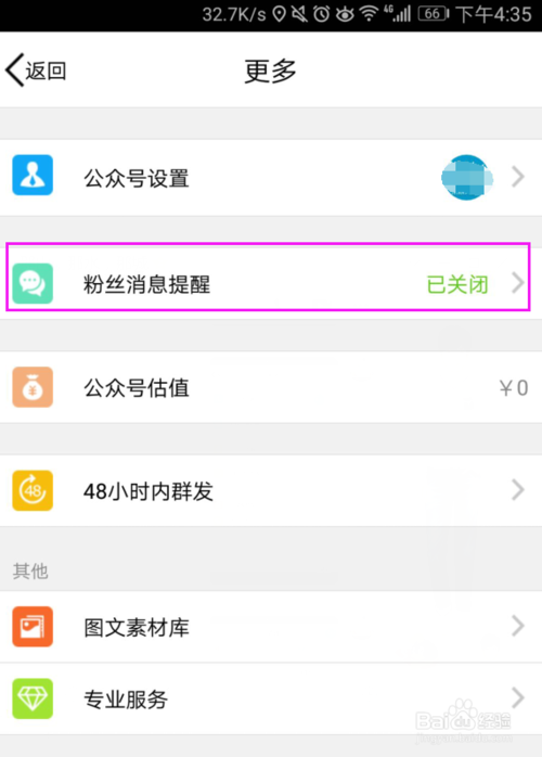 看到【粉絲消息】是關(guān)閉的狀態(tài),點(diǎn)擊下,如圖。