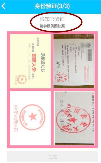 這個(gè)方式是針對(duì)剛剛收到錄取通知書,還沒有正式入學(xué)領(lǐng)到學(xué)生證的大學(xué)新生。按照事例拍攝照片,注意一定要把姓名和學(xué)校拍清楚,而且要與之前填寫的姓名和學(xué)校一致,否則就不能通過審核啦