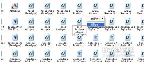 7、雙擊打開(kāi)“字體”后,看到系統(tǒng)的字體,我們?cè)诳瞻滋?,右擊粘貼。