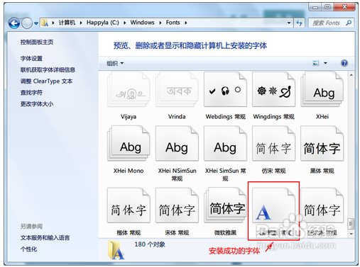 二、在WIN7系統(tǒng)上安裝手寫(xiě)字體