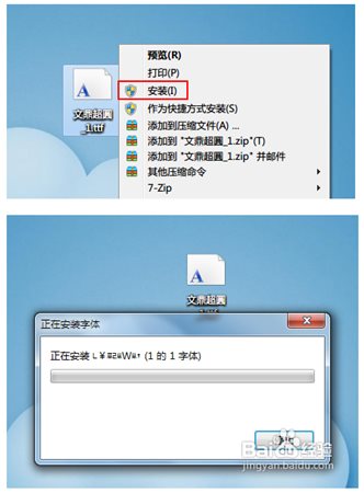 5、也可以使用鼠標(biāo)右鍵安裝手寫(xiě)字體,這種方法更加快捷。鼠標(biāo)右鍵字體文件,然后在彈出的列表中點(diǎn)擊"安裝" 進(jìn)行字體安裝。字體很快就完成安裝。