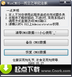 WinCMOS無驅(qū)動版 簡體中文綠色免費版 windows下清除備份恢復(fù)CMOS數(shù)據(jù)的一個小工具,不釋放驅(qū)動,不創(chuàng)建進(jìn)程,不進(jìn)0環(huán),不使用中斷門,純粹系統(tǒng)API調(diào)用