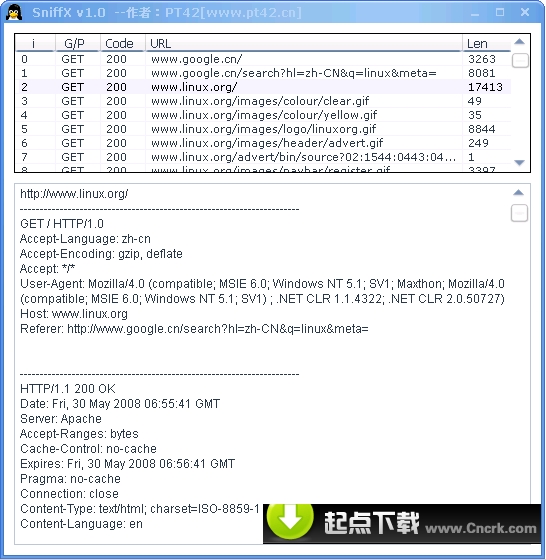SniffX(網(wǎng)絡(luò)嗅探分析器) V1.2 簡體中文綠色免費版 SniffX是一個HTTP協(xié)議的網(wǎng)絡(luò)嗅探分析器,協(xié)議分析器和HTTP文件重建工具。它可以捕捉局域網(wǎng)內(nèi)的含有HTTP協(xié)議的IP數(shù)據(jù)包,并對其內(nèi)容進行解碼分析。通過它,您可以看到現(xiàn)在都訪問了哪些網(wǎng)頁,這些網(wǎng)頁的內(nèi)容是什么。