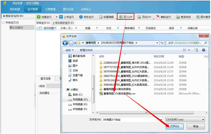 接下來我們把數(shù)據(jù)包導(dǎo)入“淘寶助理”中