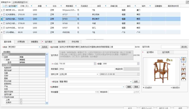 3、導(dǎo)入后,非關(guān)鍵屬性、寶貝數(shù)量等重新根據(jù)自己的情況設(shè)置好,就可以保存上傳啦。