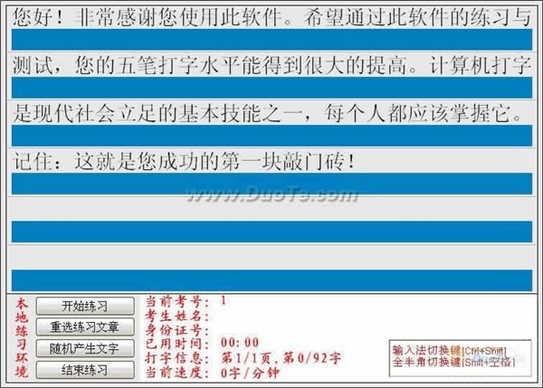1、增加了聯(lián)網(wǎng)練習(xí)的功能,客戶機(jī)可向考試服務(wù)器申請聯(lián)網(wǎng)練習(xí),每次的練習(xí)成績均能保存,有利于從考試服務(wù)器上調(diào)閱各考生練習(xí)一段時(shí)間后的進(jìn)步情況。聯(lián)網(wǎng)練習(xí)時(shí)可由電腦自動產(chǎn)生練習(xí)文字或管理員指定文件夾下隨機(jī)選擇文本文件。