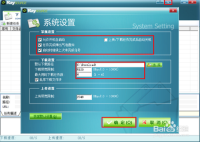 1、點(diǎn)擊RaySource右上角的扳手圖標(biāo),然后對程序的細(xì)節(jié)進(jìn)行設(shè)置。建議取消勾選開機(jī)啟動和將下載目錄設(shè)置到非系統(tǒng)盤,其他保持默認(rèn)。點(diǎn)擊確定,然后重新啟動raysource即可: