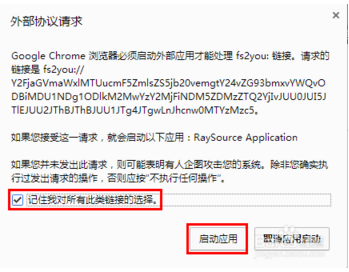 3、如果使用的是谷歌內(nèi)核的瀏覽器,那么在此處勾選記住我對所有此類鏈接的選擇,然后點(diǎn)擊啟動: