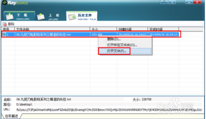 首先在raysource中選中正在下載的文件,點(diǎn)擊刪除按鈕,會彈出一個對話框讓你選擇是否在刪除選中任務(wù)的同時(shí)刪除文件,不要選同時(shí)刪除!