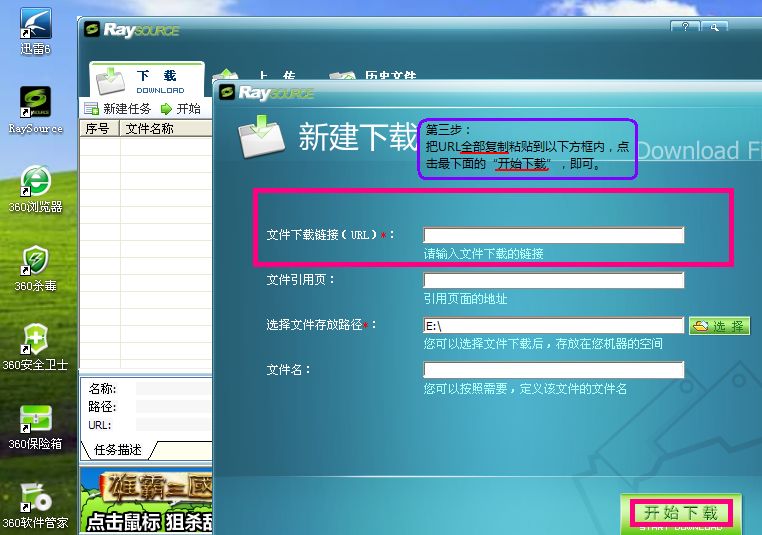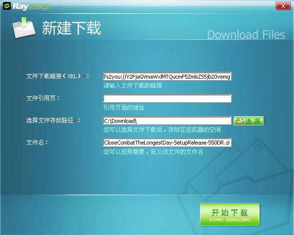 5、點(diǎn)擊Raysource主界面上的新建任務(wù),然后粘貼下載鏈接,并點(diǎn)擊開始下載: