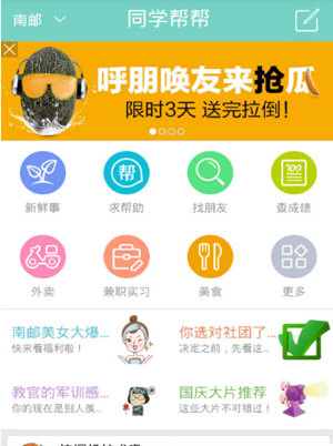 新鮮事:校園頭條隨時看,無聊刷屏必備品。求幫助:奇葩問題神回復(fù),前輩在線來幫助。