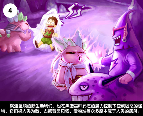 就連溫順的野生動(dòng)物們,也在黑暗巫師邪惡的魔力控制下變成兇惡的怪物,它們視人類為敵,占據(jù)著晶貝場(chǎng)、愛(ài)物堆等眾多原本屬于人類的居所。