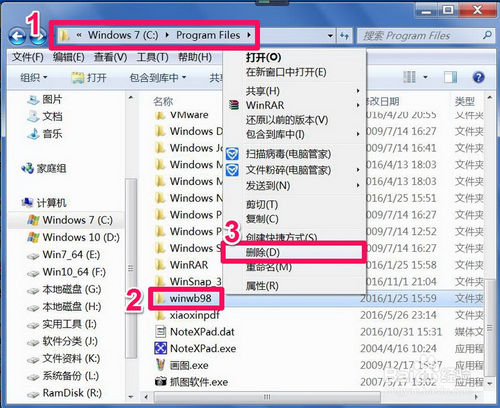 最后在應(yīng)用程序安裝文件夾(C:\Program Files)看看是否還有殘留,如果查到帶有“winwb98”字樣的文件夾,則可以清除。這樣就基本把王碼五筆的殘留刪除干凈了。