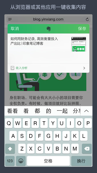 一鍵保存網(wǎng)頁圖文:從手機(jī)瀏覽器分享到印象筆記。