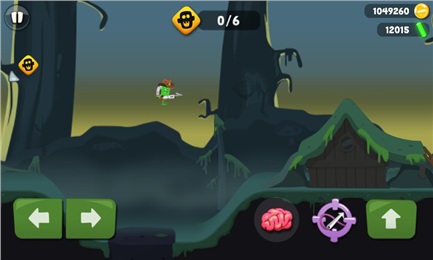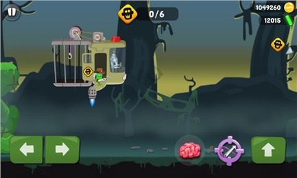 僵尸獵手游戲中綠皮怪與機(jī)器人小伙伴駕駛著一艘飛碟到一片沼澤中尋找外星人的蹤跡,當(dāng)飛碟停止時(shí),就可以降落開(kāi)始進(jìn)行抓捕僵尸的游戲了。僵尸們都躲在地下,有僵尸的地方會(huì)出現(xiàn)一個(gè)大腦的圖標(biāo),玩家需要丟出粉紅色的腦子去引誘僵尸們,不過(guò)這些僵尸都是一些膽小的家伙,丟下腦子后僵尸所處的地方就會(huì)出現(xiàn)一個(gè)感嘆號(hào),遠(yuǎn)離感嘆號(hào)至不會(huì)變成黃色的位置,僵尸們就會(huì)爬出來(lái),這時(shí)候就趕緊抓住機(jī)會(huì)趕上去使用SM皮鞭將僵尸捕獲。