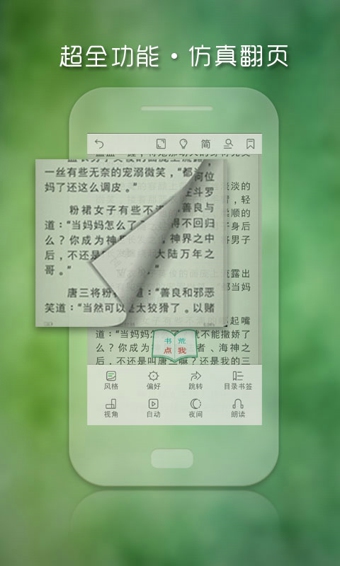 支持多種翻頁(yè)效果(平移、仿真、滾動(dòng)等)。