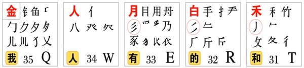 撇為TREWQ五鍵,分別對應(yīng):一撇兩撇三撇……;
