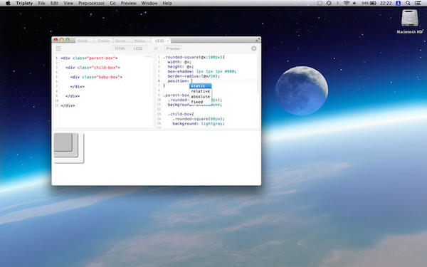 - 內(nèi)置的預(yù)覽與即時(shí)重編功能- 本地HTTP服務(wù)器帶有現(xiàn)場(chǎng)重裝外部瀏覽器功能(現(xiàn)代瀏覽器,包括現(xiàn)場(chǎng)重載的iOS4.2+)