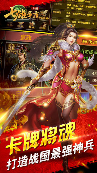 《七雄爭霸》是騰訊移動游戲平臺專為微信和手機QQ用戶量身定制、傾力推薦的一款精品手機策略游戲,是殿堂級頁游《七雄爭霸》的官方手機版,由頁游《七雄爭霸》的原班人馬傾力打造。《七雄爭霸》游戲?qū)⒅性貐^(qū)分為燕、韓、趙、魏、齊、楚、秦七大區(qū)互相反復爭奪的手游。延續(xù)國戰(zhàn)、千重樓、過關(guān)斬將等經(jīng)典玩法,同時加入神將系統(tǒng)、武將情緣、冒險等全新元素,將恢弘大氣的戰(zhàn)國史詩用輕松休閑的方式呈現(xiàn)給玩家。