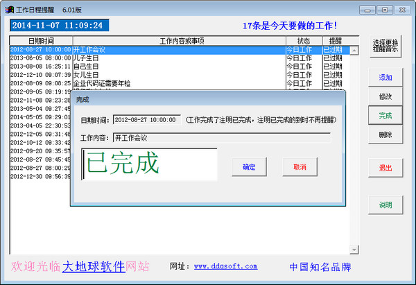 大地球工作日程提醒系統(tǒng) v6.01 免費(fèi)版 大地球工作日程提醒系統(tǒng) v6.01 免費(fèi)版