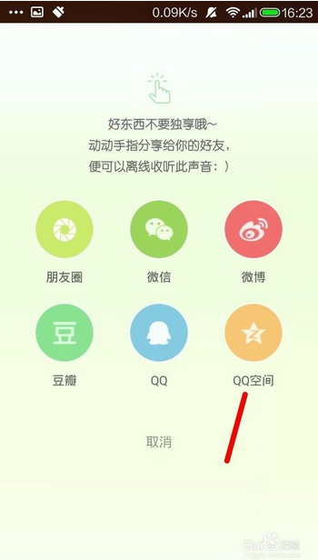 點(diǎn)擊分享,即可下載聲音了。我這里以分享到qq空間為例。